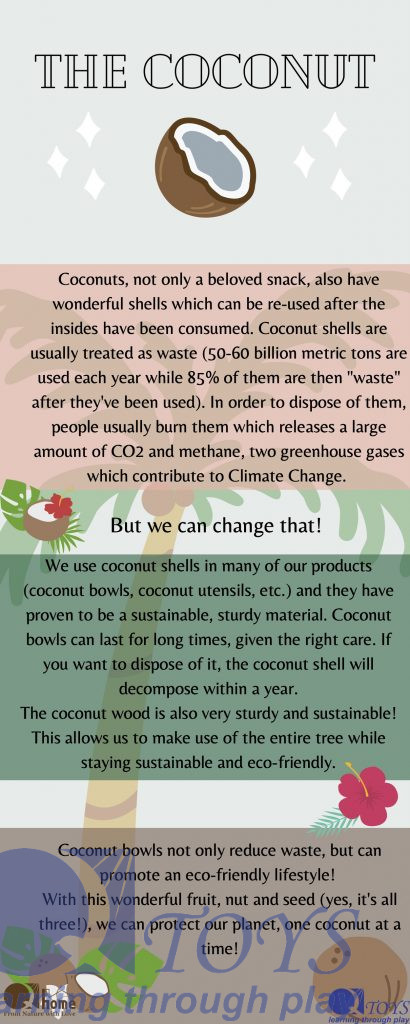 Qtoys products are made exclusively from plantation and/or recycled timber. Working toward zero waste target, we also explore coconut shells ( by products of coconuts after the water and the juice are consumed) in making beautiful toys.