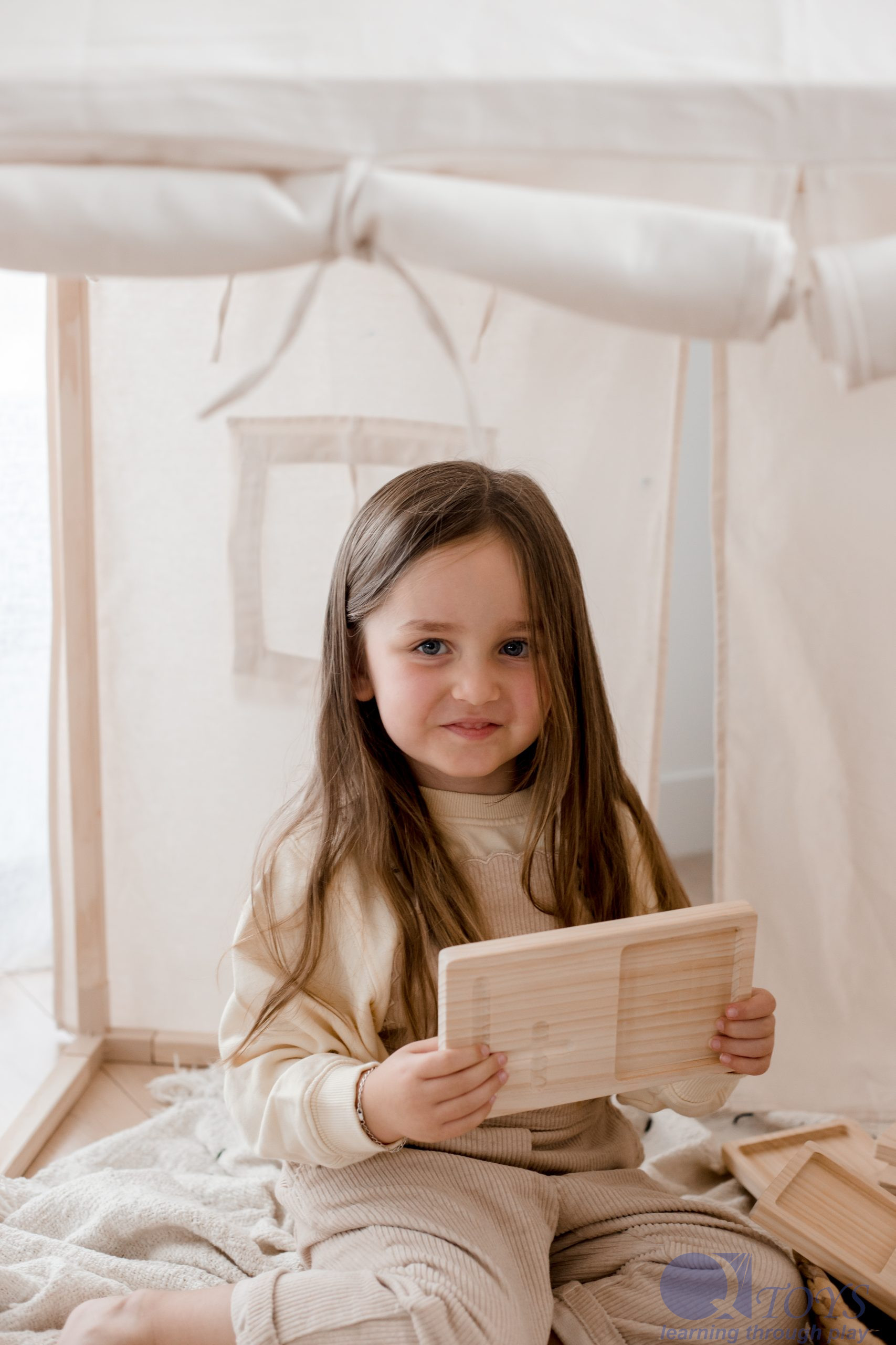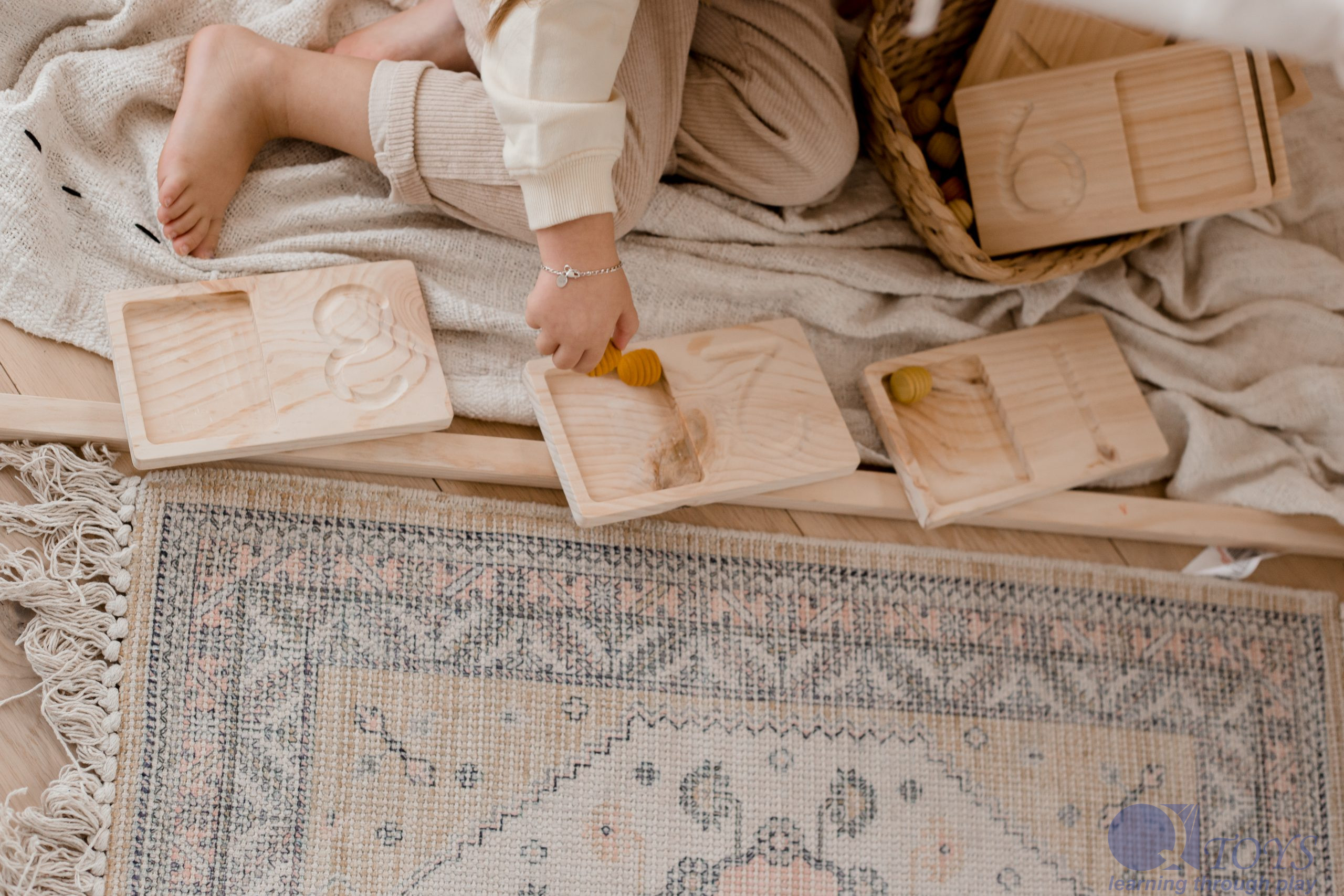Our beautiful counting trays are perfect for children’s numeracy development. This product is designed for toddlers to have fun with writing and learning to count. There are many ways that you can use this product, from filling it with sand for writing or tracing the number to using different materials for counting. The board can also be used with play dough as a fun and creative way to learn the numbers. These counting trays include numbers from 0-9 and comes in the wooden box. It is made from Australian Timber.