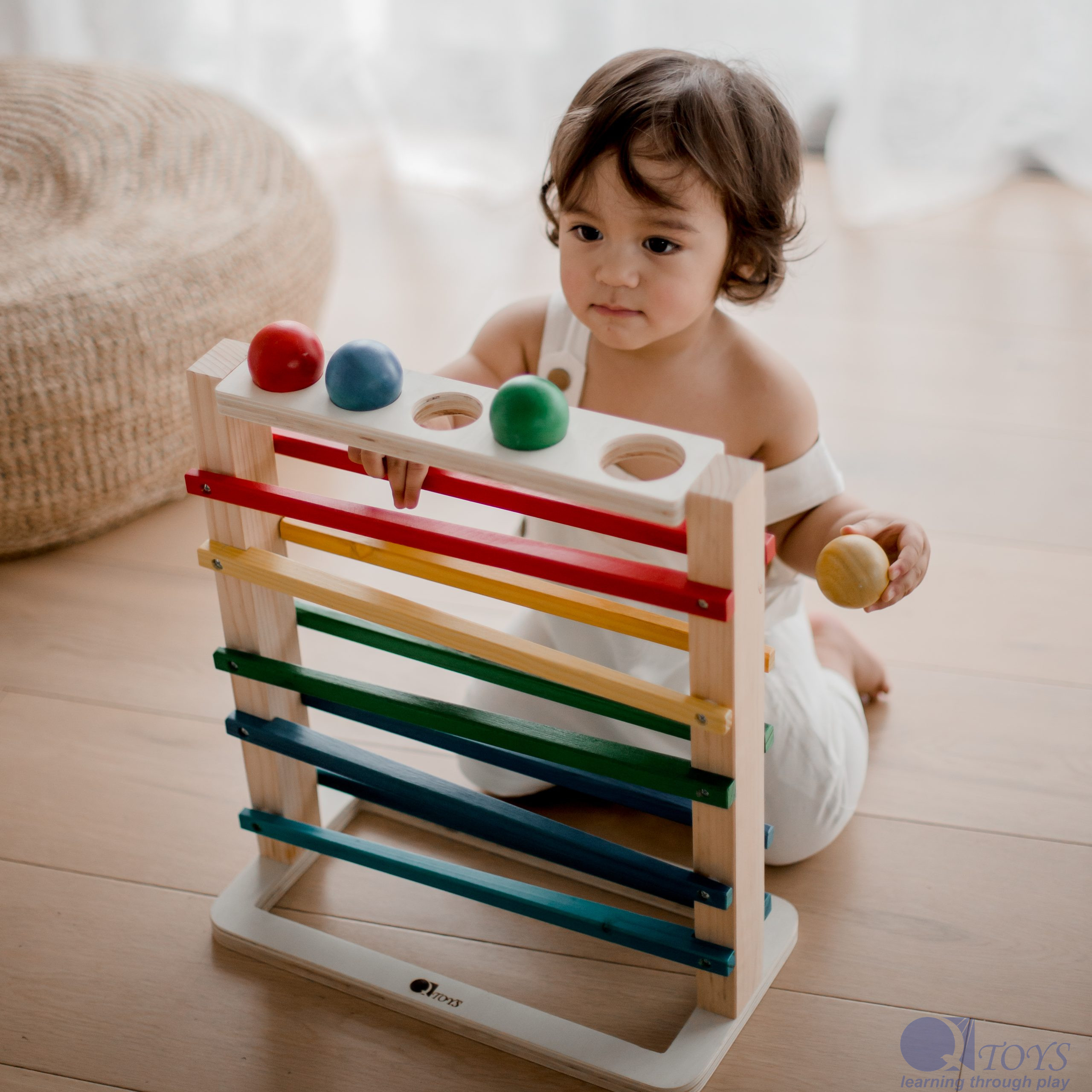 Colorful moving objects are always attractive to young children. This ‘track a ball rack’ is perfect for those curious minds. The track consists of different colors which promotes color recognition. It also includes 5 colored balls that match the colors of the track.